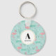 Pastel Pink Flamingos Green Pattern Monogram Key Ring