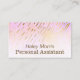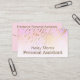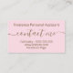 These business cards with a gentle pink pastel color scheme are for a home business such as freelance personal assistant, consultant, office or home organizer and de-clutter help, or personal shopper.