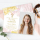 Pastel Pink Gold Floral First Holy Communion Photo Invitation