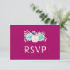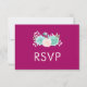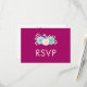 RSVP card with a magenta background. A pastel colour watercolor bouquet at the top. The flowers, leaves and sprigs are pastel pink and green. Created with watercolor paint and digitised.