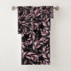 Pastel Pink Leaves and Black Pattern Bath Towel Set