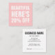 Minimalist, modern and trendy discount card in pastel pink.