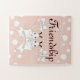 Pastel Pink Off-White Ribbon Cute Twin Bunny Kids Jigsaw Puzzle