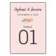 Pastel Pink & Peach Hibiscus Numbered Table Card