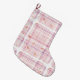 Pastel Pink Puppy Christmas Stocking with Crowns & Hearts | Cute Blush Winter Plaid