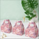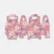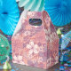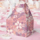 This favour box features flowers and leaves in pastel shades of pink and purple on a pink background.