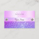 Make a lasting impression with this elegant and quality business card design featuring a luminous purple pink gradient glitter effect print with glamourous diamonds graphics and a shimmery pastel pink background.