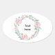 Pastel pink rose wreath customisable name or text oval sticker