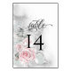 Wedding Table Number | Elegant Pink Roses with shimmering white foliage will set off your floral wedding or bridal tables just beautifully. Light Pink Roses with Silvery leaves and sparkles with a feathered pewter watercolor background - A combination of script calligraphy combined with a minimalist, contemporary style text layout makes it a trending style wedding suite. This is part of a wedding stationery collection with matching wedding accessories. Design created for the BarefootBride™ © by WhimsicalArtwork™