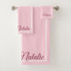 Pastel pink solid colour monogrammed bath towel set
