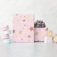 A seamless pattern of variously sized gold and rose gold stars scattered across a soft pastel pink background. The design has a gentle, dreamy feel with a subtle metallic shine, perfect for adding a touch of whimsy and elegance.