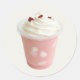 This charming sticker design showcases a pastel pink dessert cup topped with a swirl of whipped cream and sprinkled with cute red accents. Perfect for adding a touch of sweet, retro-inspired style to any surface, this delightful illustration captures the playful, nostalgic feel of classic treats.