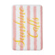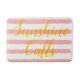 Sunshine Calls is written in bright sunny yellow. Pretty pink pastel and white horizontal striped pattern. Cool trendy bathmat pattern with a beach vibe for the warmer spring and summer months for decor fun. Original Artwork Design © TamiraZDesigns