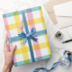 Pastel Pink Yellow Blue Check Pattern Easter Girly Wrapping Paper
