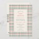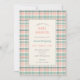 Pastel Plaid baby shower invitation combines soft pinks, teal and cream in a framed design with typography text.