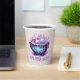 Whimsical pastel Halloween paper cup featuring a purple skull inside a bubbling cauldron. Soft colours and magical details make it perfect for fans of cute spooky art and pastel goth vibes. Ideal gift for Halloween lovers, witches, and pastel aesthetic fans.