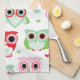 pastel powder colour owl background tea towel