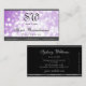 Pastel Purple Glitter Monogram Black Silver Lilac Business Card