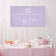This chic light purple baby shower party banner features elegant minimalist white typography below a cute rocking horse toy. Modern, simple script decor for a baby shower.