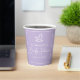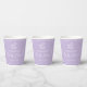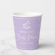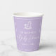 This personalised pretty pastel purple baby shower paper cup features elegant minimalist white typography below a cute rocking horse toy. Modern, simple script decor for a baby shower.
