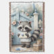 A gentle cottagecore scene unfolds as a wide-eyed raccoon stands before a pale blue garden gate, holding a flower-tied letter as blossoms spill softly from woven baskets. The mood is tender and storybook sweet, blending whimsical charm with pastel florals, warm woodland character, and a dreamy watercolor glow. The soft blues, blush pinks, and airy neutrals create a serene, heartwarming aesthetic that feels like a quiet moment of magic waiting to be shared. AI generated artwork.
