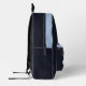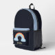 A black backpack with a pastel cute rainbow, its two blue clouds and a customisable text: perfect for a romantic gift to a girlfriend.