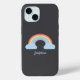 A black phone case with a pastel cute rainbow, its two blue clouds and a customisable text: perfect for a romantic gift to a girlfriend.