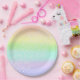 This whimsical design with organic circles in circles on soft pastel rainbow colours is perfect for clothing, gifts, and fun home decor.