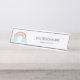 A desk name plate with a pastel rainbow illustration and its two blue clouds with employee name and job or service. These nameplates will bring colours touch to school or offices!