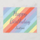 Pastel Rainbow Diagonal Stripes Birthday Postcard