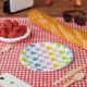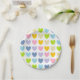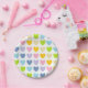 Abstract digital rows of pastel rainbow coloured hearts against a white background. Colours include pink, gold, ecru, lime green, pastel blue, blue grey and lavender.
