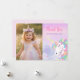 Pastel rainbow unicorn artwork with watercolor wash background and delicate cloud illustration. This whimsical fairytale layout features elegant script typography and dreamy pastel hues, perfect for a magical girl birthday party celebration.