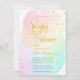 Pastel rainbow ombre gold glitter baby shower invitation