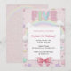 Make her 5th birthday feel magical with this pastel rainbow birthday invitation designed with glitter-style lettering, soft clouds, sparkling stars, and a sweet bow accent. The dreamy colour palette and playful details create a joyful, storybook-style look that’s perfect for girls who love rainbows, sparkle, and fantasy themes. A charming invitation that sets the tone for a fun, colourful, and unforgettable birthday celebration.