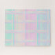 Pastel Rainbow Sparkle Holographic Jigsaw Puzzle featuring rows and columns of pink, teal, peach, and sparkly glitter style crystals and chrome style tubes in a graph design. Test your puzzle skills with this fascinating holographic style design!