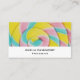 Business cards with a yummy photo. A macro photo of a lollipop. Pastel colours in a spiral pattern. Blue pink and yellow.
