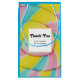 A party thank you gift bag with a yummy photo. A macro photo of a lollipop. Blue pink and yellow pastel colours in a spiral pattern.