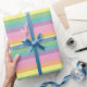 Pastel rainbow stripe wrapping paper for a young girl's birthday party. This chic design is perfect for a unicorn or princess party but can work for any girl's party theme. It is effortlessly adorable and ready to bring your celebration to the next level.