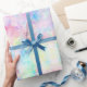 This gift wrapping paper features a gorgeous swirl of tie-dye style pastel rainbow colours with subtle holographic, iridescent, and watercolor imagery.