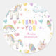 Pastel rainbow unicorn magic thank you birthday classic round sticker