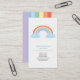 A vertical business card with a pastel rainbow illustration and its two blue clouds. On the back, there are vertical rainbow stripes in pastel colours.