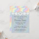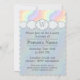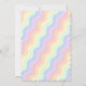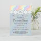 This invitation features lines of rolling waves that make a simple and fun pattern in a rainbow of pastel colours from pink to lavender overlayed by a semi-transparent layer of rain below a set of fluffy grey clouds. The middle cloud holds a monogram set above the rain section on the lower portion of the card where you can find sample text that can be customised to create a personalised invite for your event.