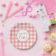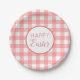 Pastel Raspberry Red Happy Easter Plaid Pattern Paper Plate