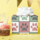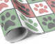 Pastel Red and green Paw Print Check Pattern Wrapping Paper