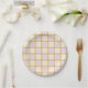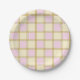 Pastel Retro Pink, Blue and Yellow Checkers Paper Plate