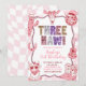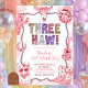 Pastel Retro Sequins Cowgirl 3rd Birthday Invitation, Blush Pink Wavy Gingham Birthday Invite, Editable Coquette Bow Birthday