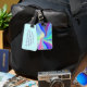 An abstract in bright pastel shades of aqua, blue, pink, purple and yellow will help you spot your bag from a distance! On the reverse, a template for your address or contact information in coordinating colours. Just type into the box under "personalise it".