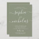 Simple minimalist script engagement party invitation in pastel sage green, pale green colours for woodland summer wedding. Please contact me if you need additional items.