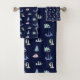 Pastel Sailboat Pattern on Midnight Blue Bath Towel Set