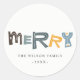 Pastel Scandi Yellow Gray Text Merry Christmas Classic Round Sticker